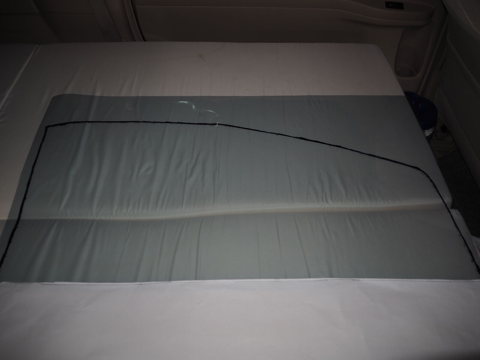 ヴェルファイア 遮熱フィルム貼り 作業記録 2025.10.08 今年の夏は暑かった 少しでもなんとかしようと遮熱フィルムを貼ってみました 1列目の左右に貼ります 1列目の左右は透過率80%以上だかないと車検に通らないらしいので、透過率87%のフィルムを買いました Amazonで50cm×300cmのものが987円でした まずは貼る前 窓の形を模造紙に写して 切り取ります 模造紙の型紙からフィルムに写します 切ります 石鹸水など吹きかけるので養生して 貼れました パッと見色の違いはわかりません 色の違いはこんな感じ 効果ですが、窓を触ると貼ってあるところと貼ってないところでちょっと温度が違うので少しはあるようです