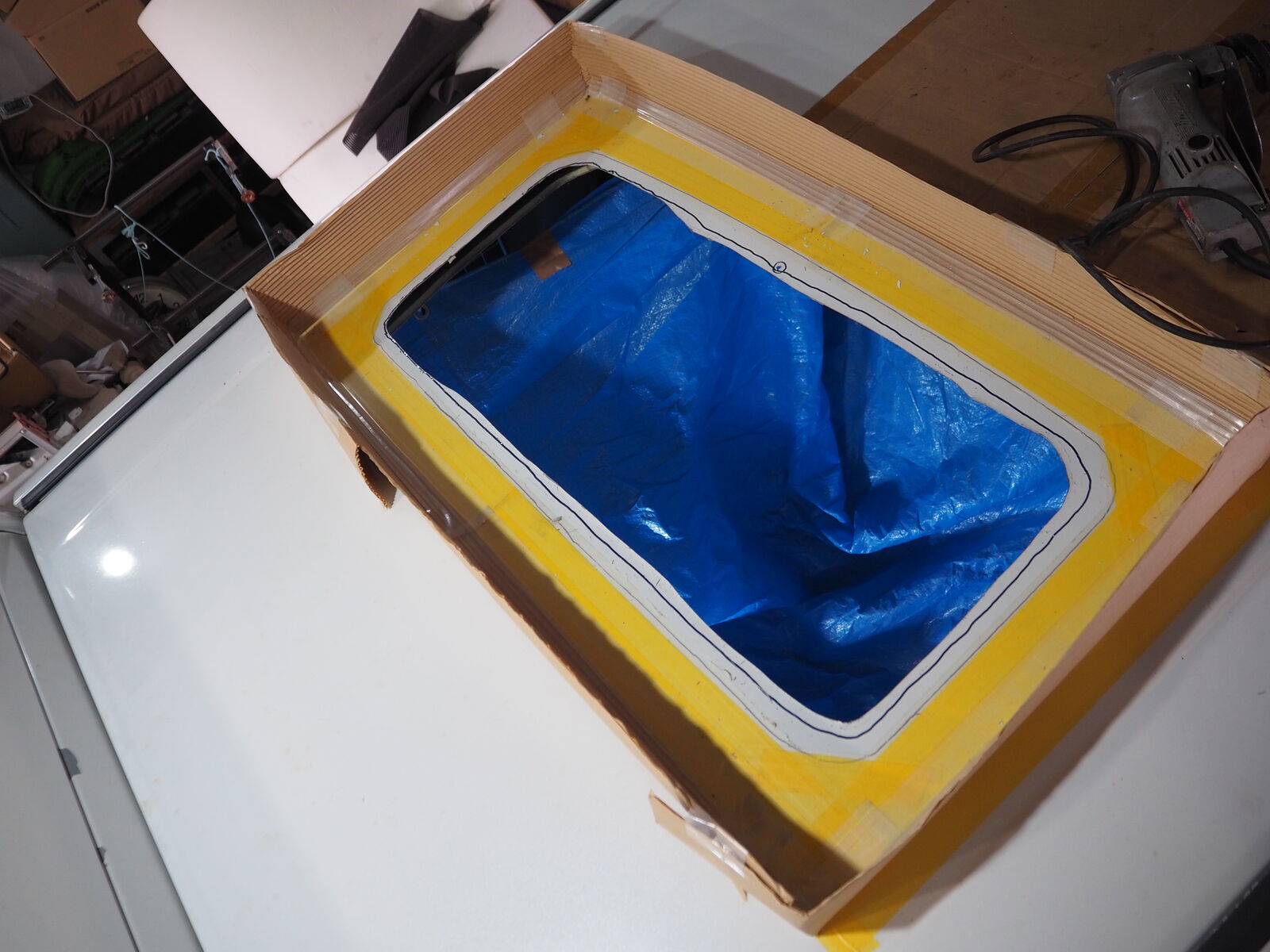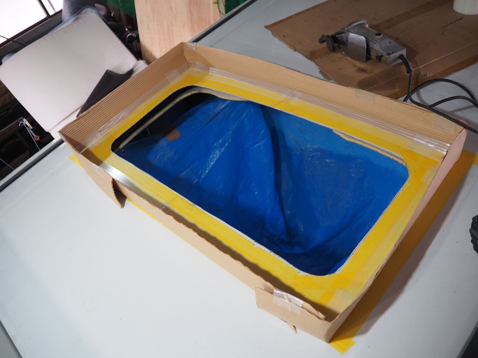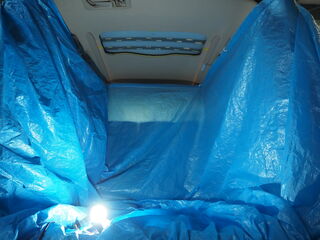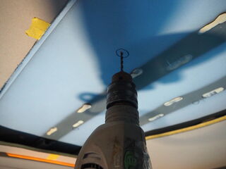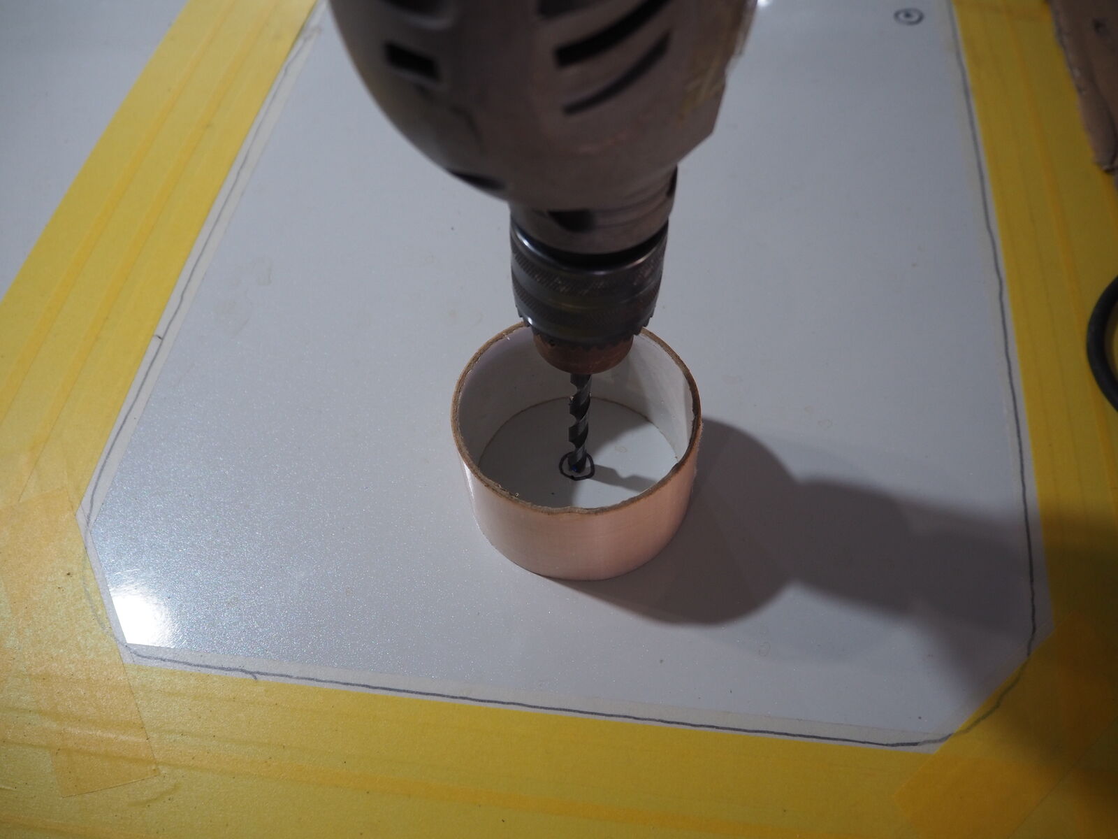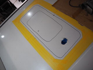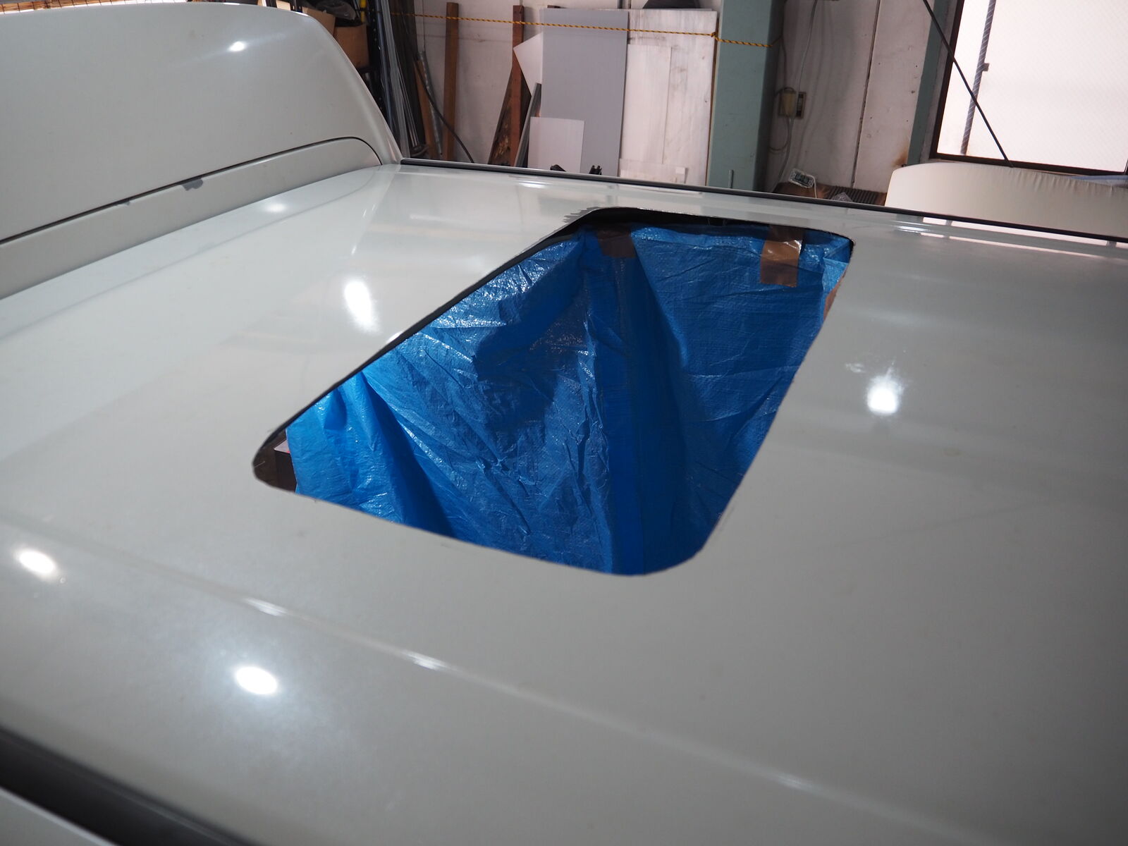 ヴェルファイア サンルーフ取付③ 作業記録 2025.11.04 天井パネルカットに向けてガッツリ養生します 前に付けた基準位置に穴を開けます まだ板金で後戻りできます 基準位置に合わせて天井カット用の型紙を小ネジで固定します マーキング カットに向けてマスキングします カット用に工具を買いました シャーという工具です ヤフオクで3850円+1220円でした シャーを使うための穴を開けていきます 上でドリルを使うときは切り粉が飛ばないようにガムテープの芯でガードします ここまで開けると後戻りはできません ゴミが飛ばないように養生します まずは練習で小さくカット 一気に開けると重みで天井パネルが歪むので、最終カットラインの2cm程内側を切ります 最終カットラインで切ります 開口部にサンルーフを合わせてみましたが当たるところがあって入りません ディスクグラインダーで調整していきます 入りました 養生を剥がすと塗装も盛大に剥がれました カットした部分にはさび止めを塗っておきます