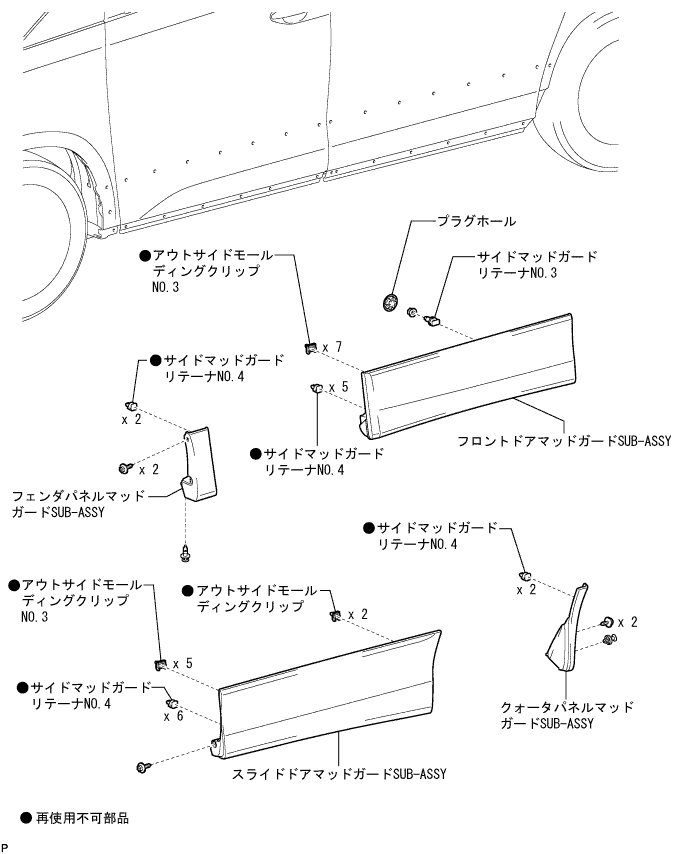 サイドマッドガードリテーナNO4(写真中の青いもの)